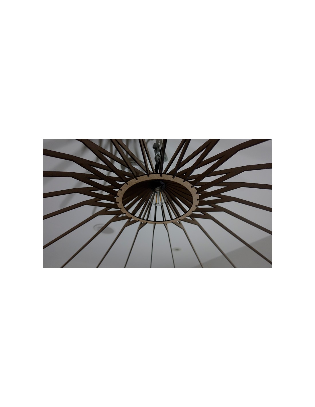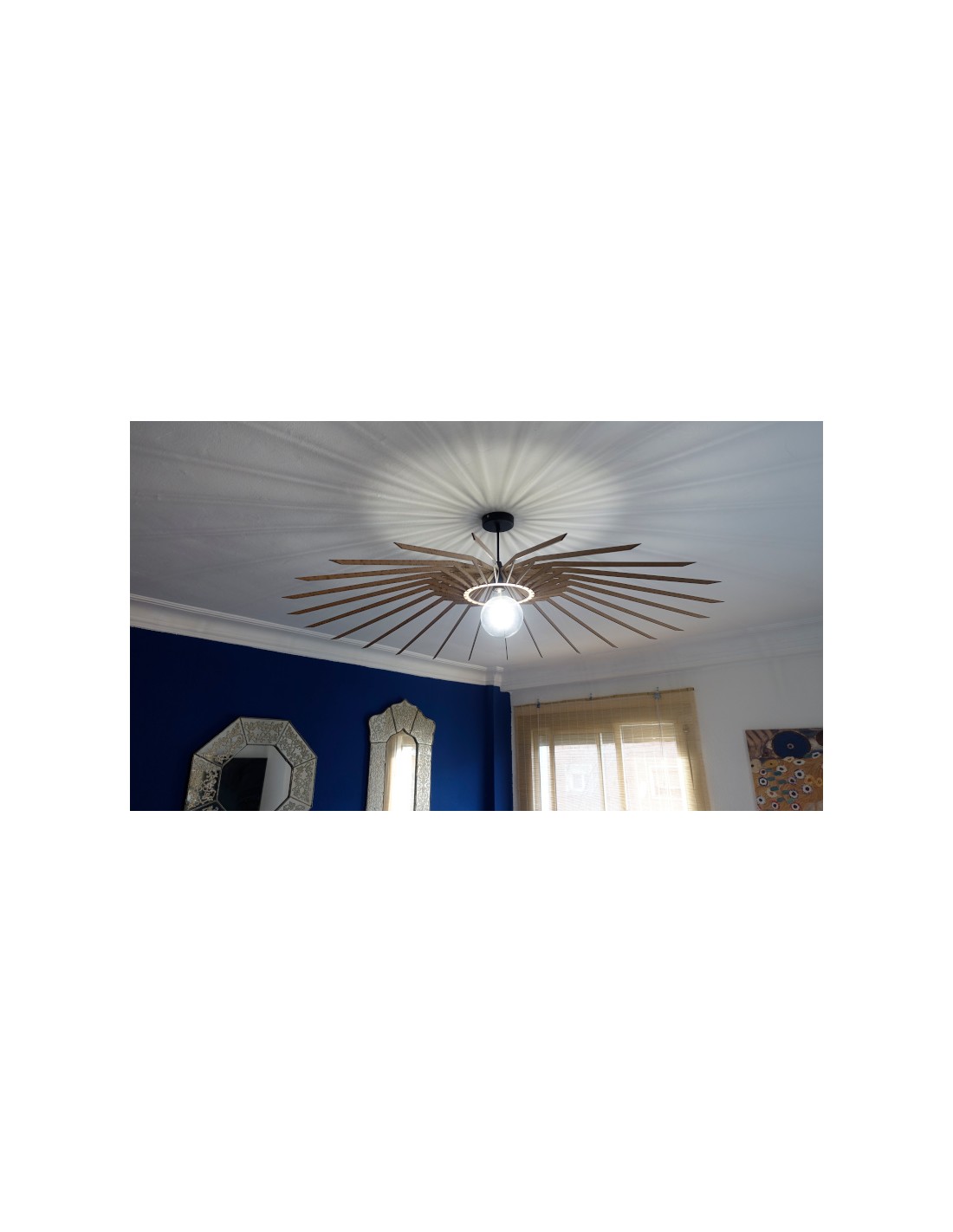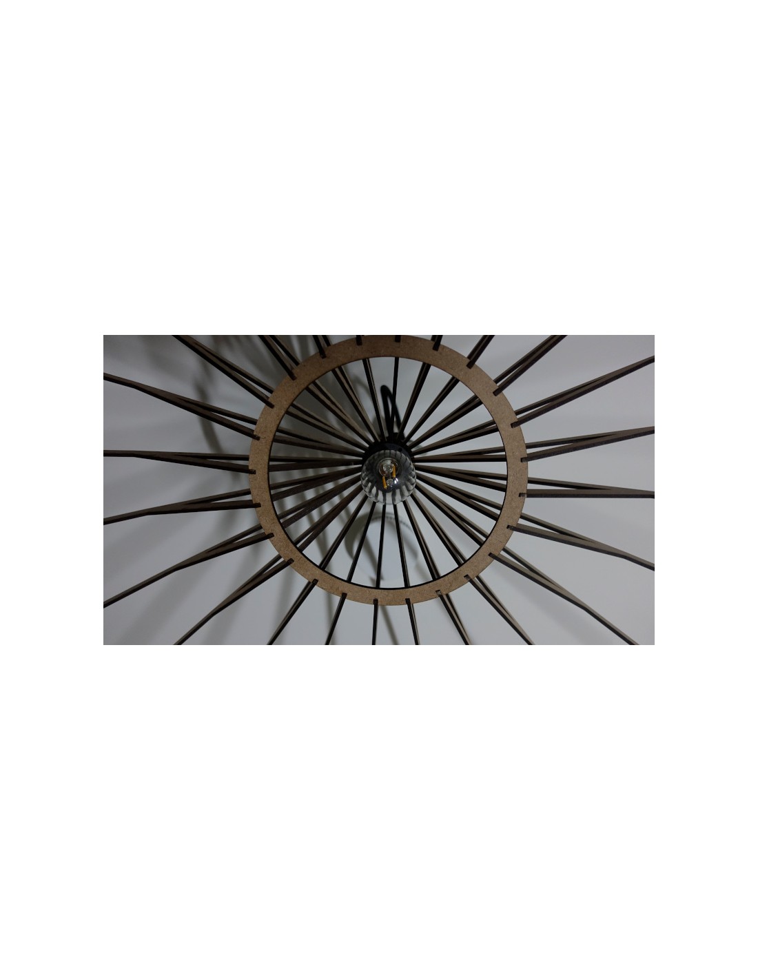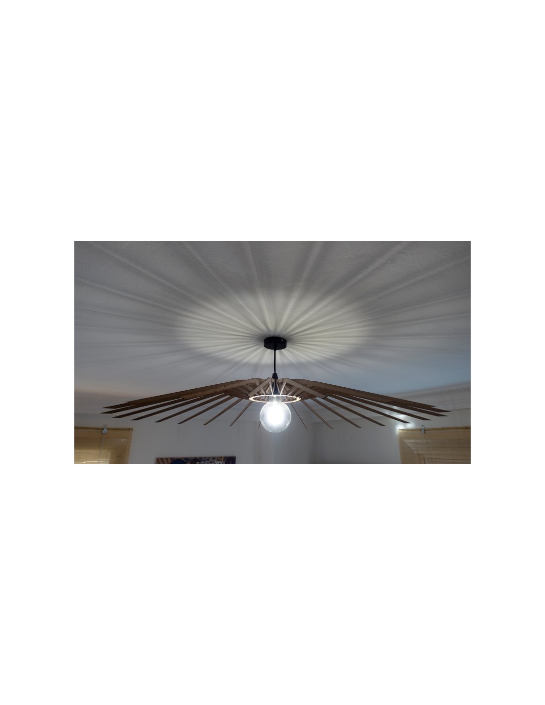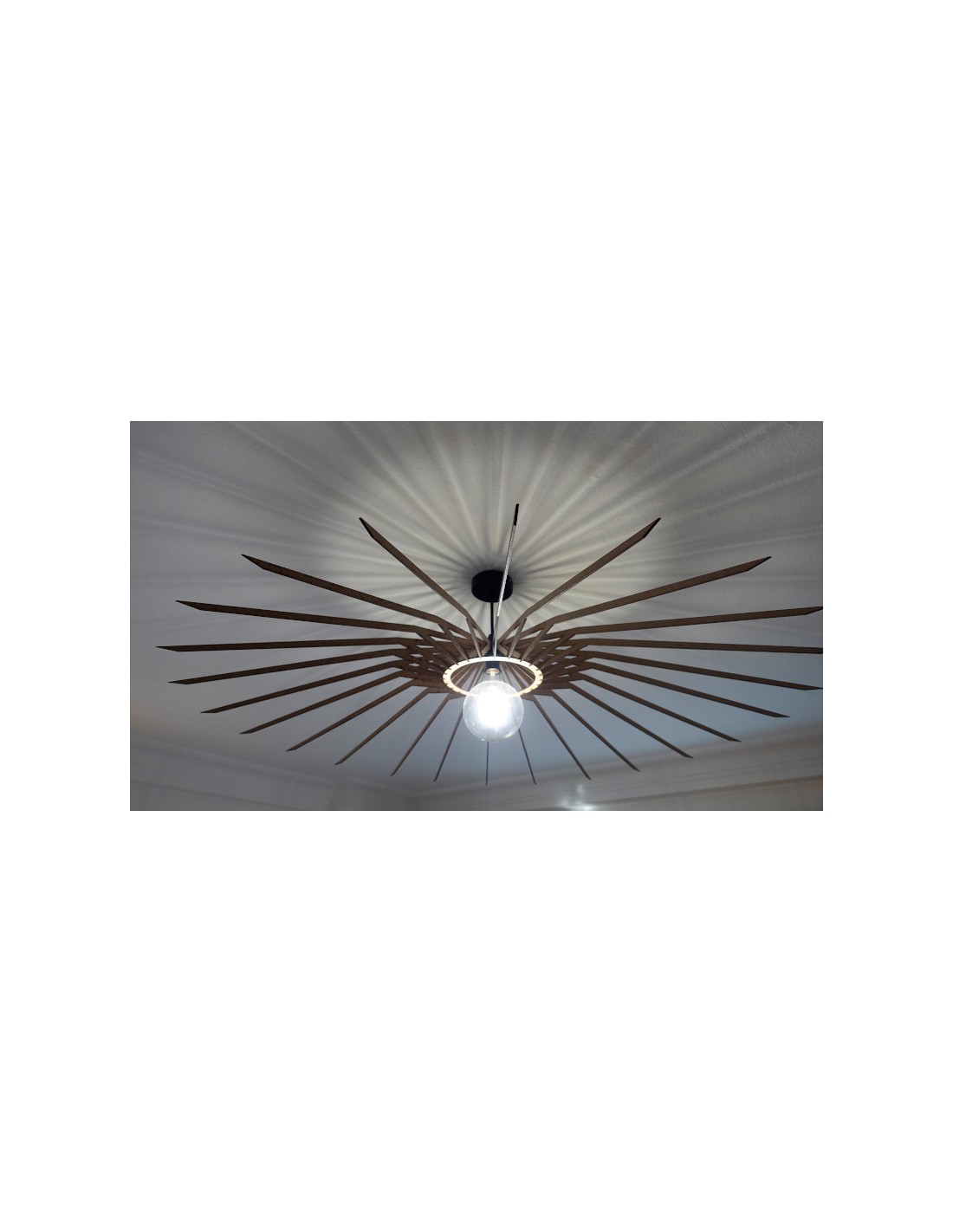 La configuración y la densidad de las "rayas" perimetrales pueden modificarse bajo encargo para proyectar el patrón de sombras que usted desee, desde un aura sutil hasta una explosión dramática de luz y oscuridad.